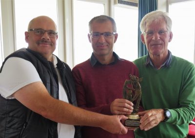 Vanwege het slechte weer zijn op de tweede speeldag slechts 9 holes gespeeld. Er kon dus ook geen play-off worden gespeeld zoals in het reglement staat. De namen van alle 3 winnaars komen op de beker en het wandbord te staan. De prijzen zijn via loting bepaald.