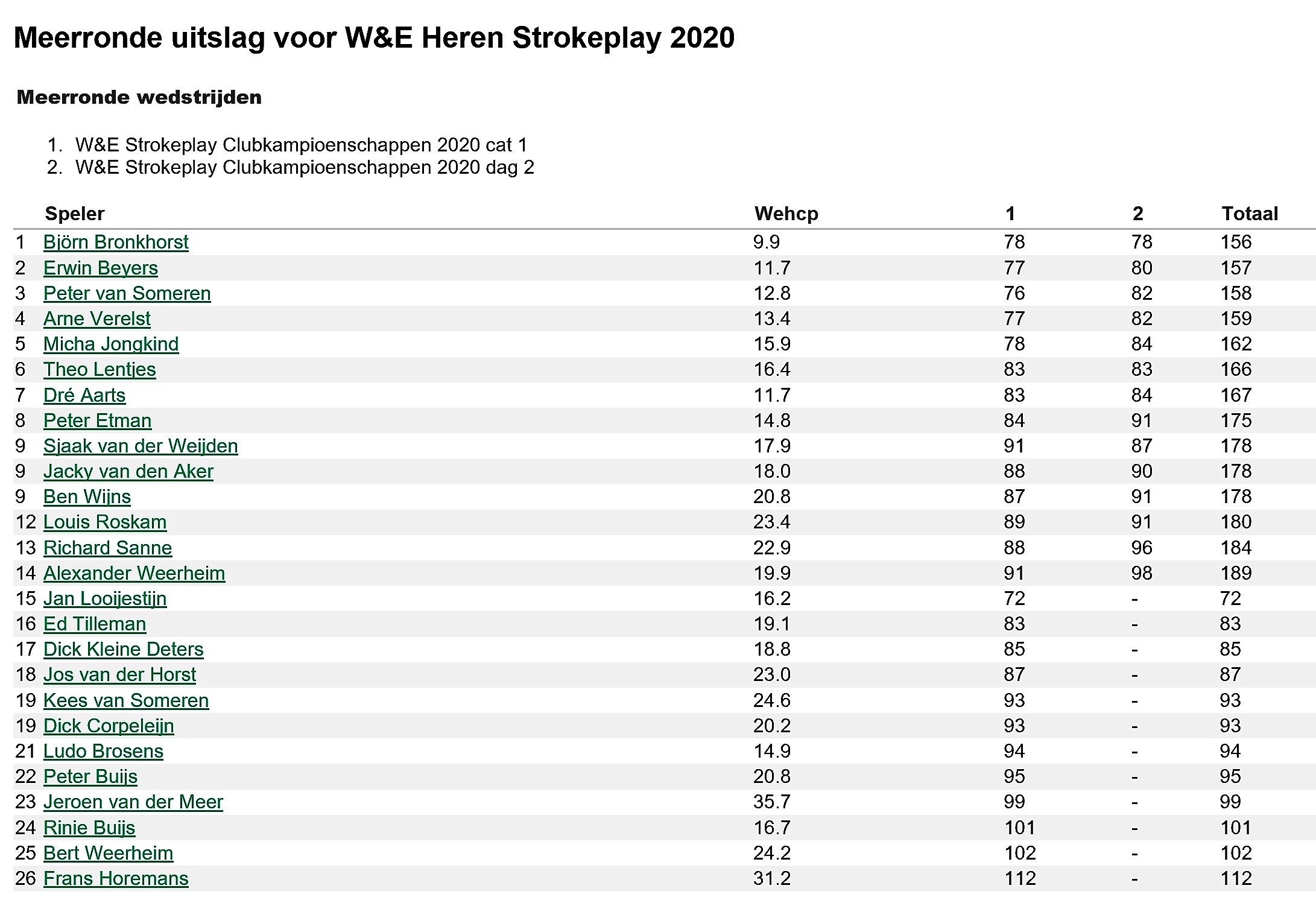 W&E Strokeplay 27 september 2020 sep 27, 2020 | Nieuws, W&E Foto's 2020 Winnaars 2020 Mmmmm Mmmmmm Precies op tijd binnen na 1e dag Uitslag Strokeplay Dames Uitslag Strokeplay Heren Uitslag Strokeplay max 5 W&E Strokeplay 27 augustus 2020 Uitslag staat bij de foto s